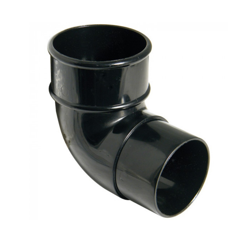 Black 92 degree bend fitting - for use with 68mm round rainwater down-pipe.