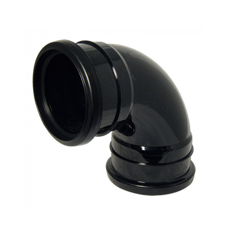 110mm Black Push-fit 90 degree bend with double socket ends - for soil systems.