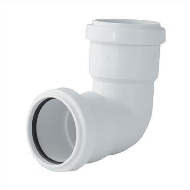 40mm White push-fit 90-degree bend for waste/drainage systems.
